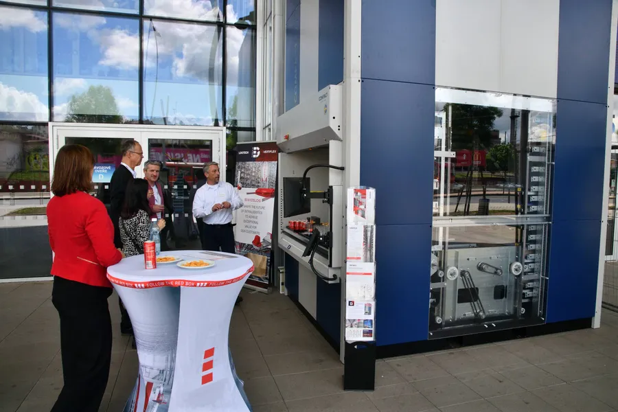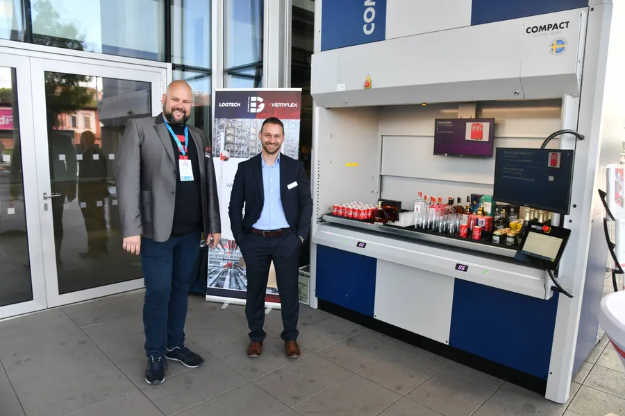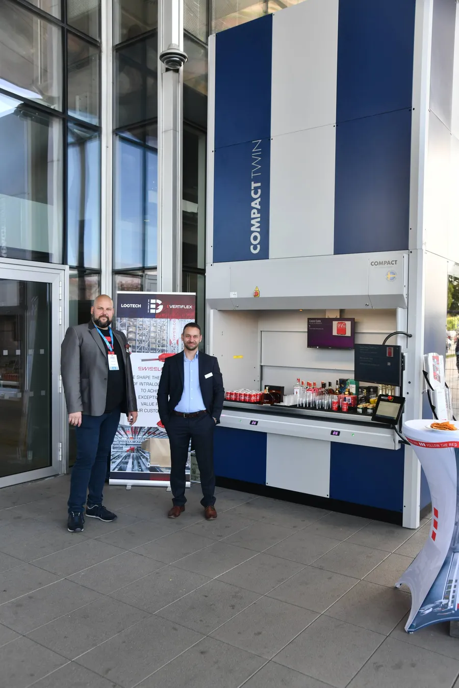 Inak to nebolo ani s našou účasťou na konferencii EASTLOG, ktorá sa konala 29. 5. v pražskom O2 Universum. Tento rok sme sa po prvýkrát oficiálne prezentovali spoločne – VertiFlex aj LogTech pod jednotným vizuálnym štýlom, a oficiálne ste nás mohli stretnúť hneď na štyroch miestach, hoci nás, samozrejme, bolo „plný dom“ ako vždy. Hneď pri vstupe do haly návštevníci nemohli prehliadnuť našu expozíciu vertikálneho zakladača Compact Twin, ktorý je už tradične obľúbenou zastávkou všetkých záujemcov o výťahové riešenia, pretože si môžu naživo vyskúšať fungovanie dvojitého extraktora a tým až dvakrát rýchlejšiu prácu v porovnaní s bežnými vežovými systémami.