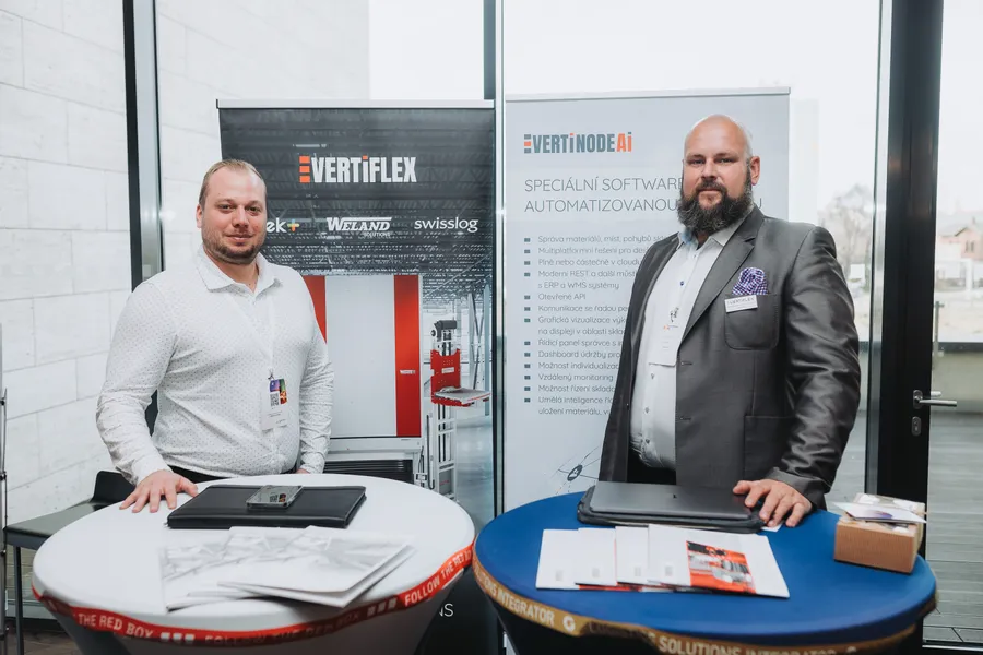 Spoločnosti VertiFlex a LogTech na mieste prezentovali Aleš Sítek a Josef Piska. Súčasťou programu bola aj prípadová štúdia Vapol CZ, v ktorej sme ukázali konkrétne prínosy vertikálnych zakladačov Compact v reálnej prevádzke.